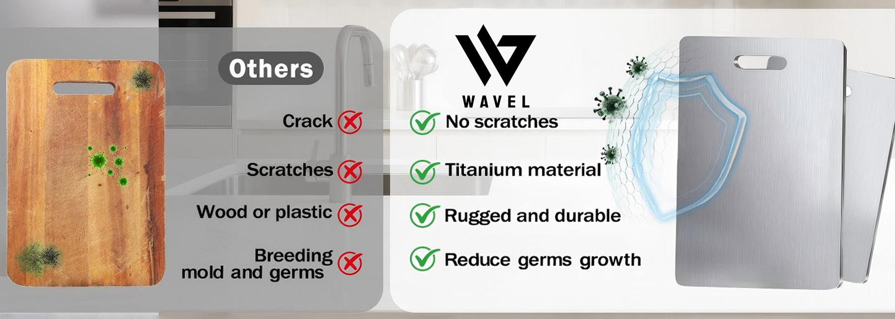 Experience Unmatched Durability And Cleanliness With Wavel Titanium Cutting Board